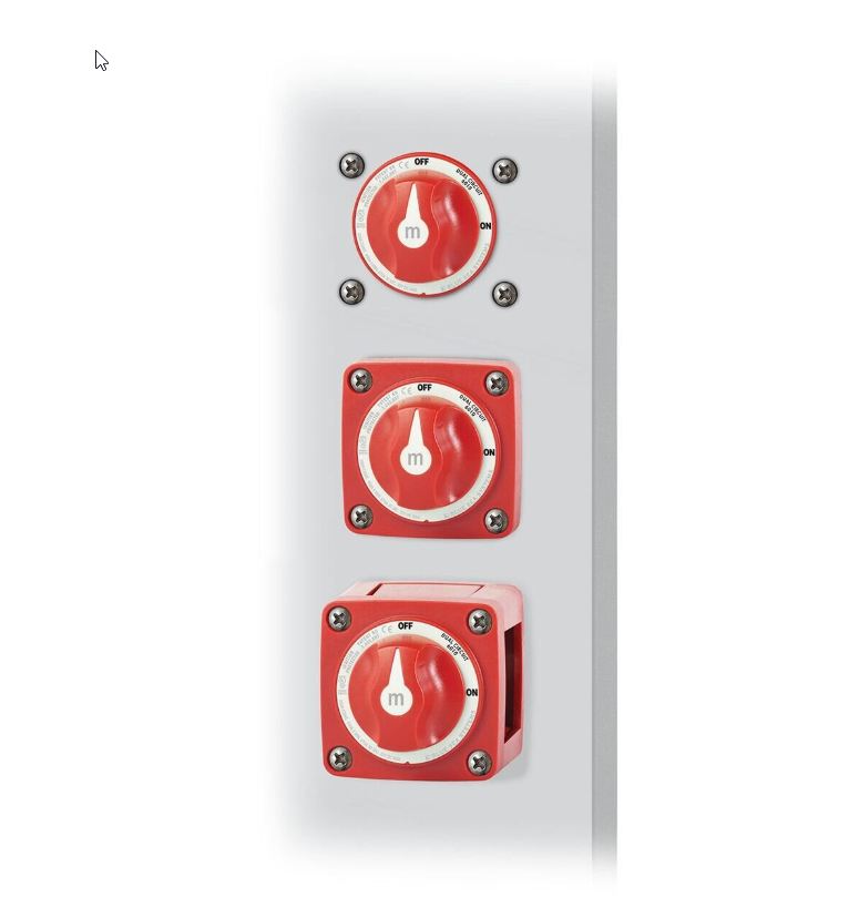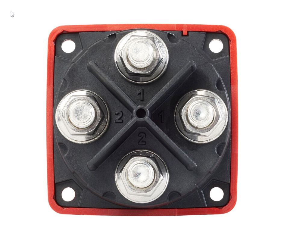 Kaksinapainen kytkin, joka katkaisee sekä positiivisen että negatiivisen liitännän. Yleisesti käytössä herkemmissä asennuksissa, joissa galvanisen virran estäminen on tärkeää, esimerkiksi alumiiniveneissä.