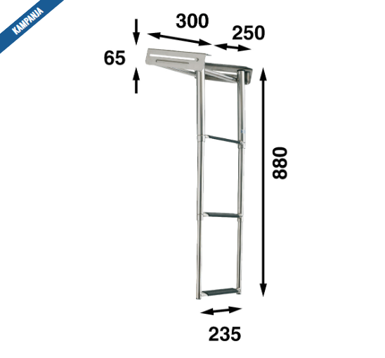 Teleskooppitikkaat kotelossa asennettavaksi keula- tai uimatason alapuolelle. Kolme askelmaa, sopii keulatasolle HP65 (9519037430). Tikkaissa on toiminto askellautojen lukitsemiseen, käytännöllinen takalukitus sekä liukujärjestelmä kotelon helppoa säätöä varten. Helppo vetää esiin ja työntää piiloon. Valmistettu haponkestävästä AISI 316 ruostumattomasta teräksestä ja viimeistelty käsin kiillottamalla.