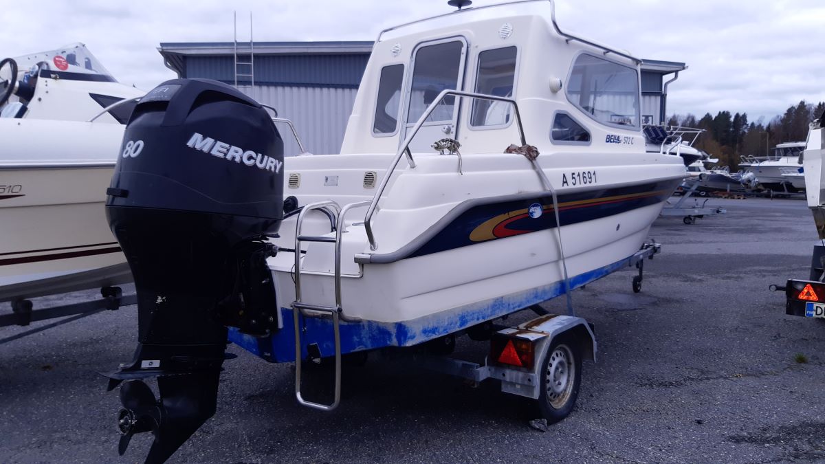 Hyväkuntoinen vasta huollettu Bella 572C -07 + Mercury F80 -2008 ja Aku 750 traileri.