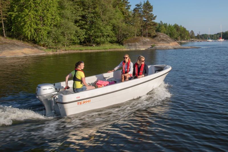 Terhi 450 on kahvaohjattava versio suosikkimallista, ja se sopii etenkin mökkiläisen yleisveneeksi. Vene soveltuu hyvin esimerkiksi verkkojen laskemiseen ja nostamiseen, kauppaveneeksi, kalastukseen tai retkiveneeksi läheiselle ulkoilusaarelle. Vene soveltuu myös nuorison käyttöön, sillä se on erittäin vakaa ja lujarakenteinen. Sadevesityhjentyvyys on mukava lisä, jolloin veneen voi jättää pohjatulppa irrotettuna mökkilaituriin pidemmäksikin aikaa ilman uppoamisvaaraa.